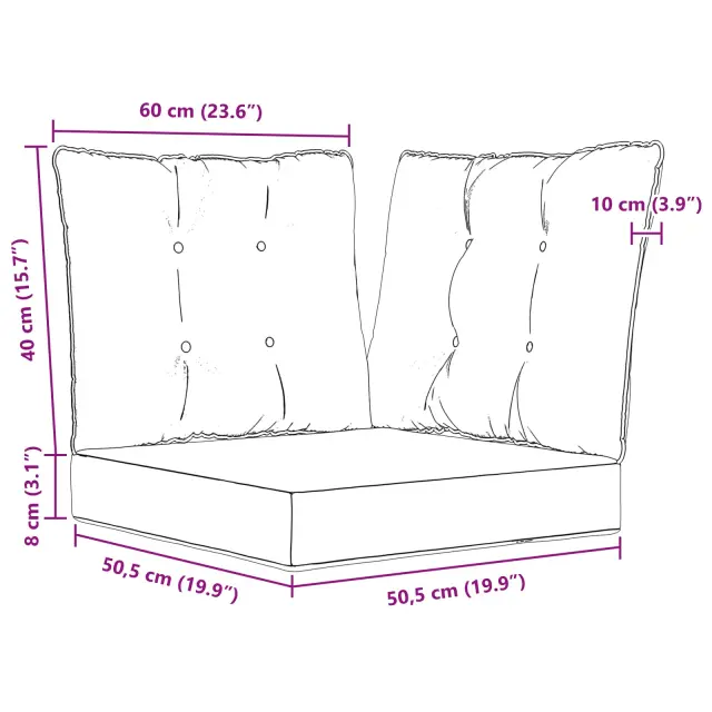 • 1x stranska blazina: 60 x 40 x 10 cm (D x Š x V)
