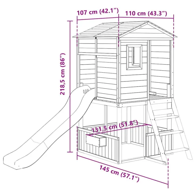 • Premišljena zasnova: Obdajajoče lesene ograje so zasnovane tako, da zagotavljajo varnost otrok med njihovo veselo igro. Poleg tega streha zagotavlja senco za vaše otroke v vročih poletnih dneh.