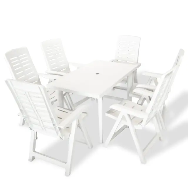 vidaXL Zunanja jedilna garnitura 7-delna plastika bela