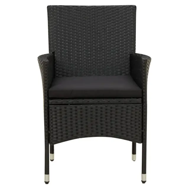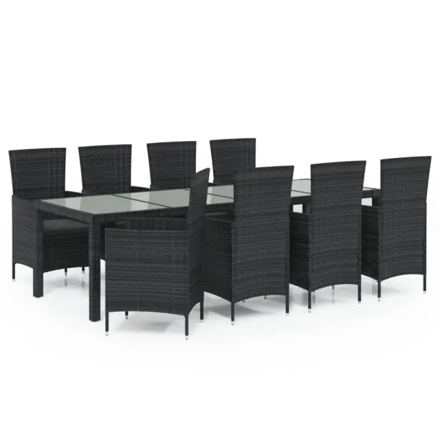 vidaXL Zunanja jedilna garnitura 9-delna z blazinami poli ratan črna