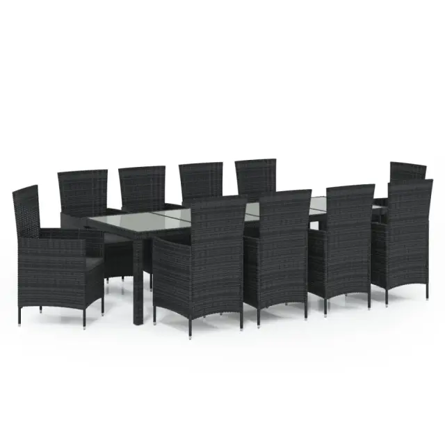 vidaXL Zunanja jedilna garnitura 11-delna z blazinami poli ratan črna