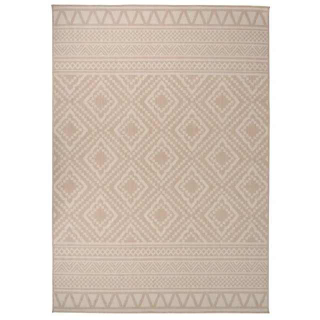 vidaXL Zunanja preproga ploščato tkanje 140x200 cm rjave črte