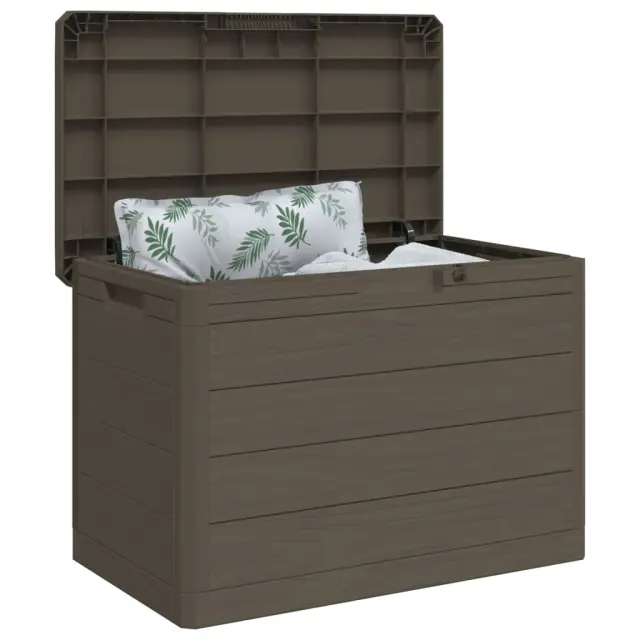 • Imitacija lesene teksture: Škatla za blazine ima imitacijo lesene teksture, ki vašemu zunanjemu bivalnemu prostoru doda pridih naravnega čara.