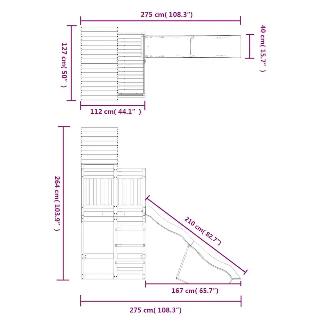 • Večnamenski center: Plezalni okvir ima 118 cm visoko ploščad, odlikujeta pa ga valoviti tobogan in peskovnik. Vaši malčki lahko k zabavi povabijo tudi svoje prijatelje.