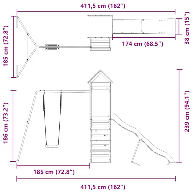 • Neskončna zabava: Ta zabavna lesena zunanja igralna garnitura je odličen način, da vaši otroci in njihovi prijatelji uživajo v zabavi, imajo več interaktivnega časa in ustvarjajo nepozabne spomine!