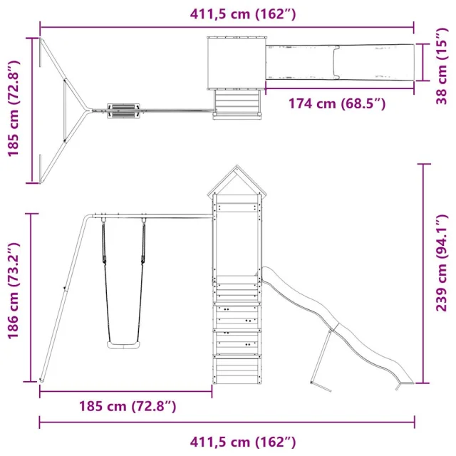 • Neskončna zabava: Ta zabavna lesena zunanja igralna garnitura je odličen način, da vaši otroci in njihovi prijatelji uživajo v zabavi, imajo več interaktivnega časa in ustvarjajo nepozabne spomine!
