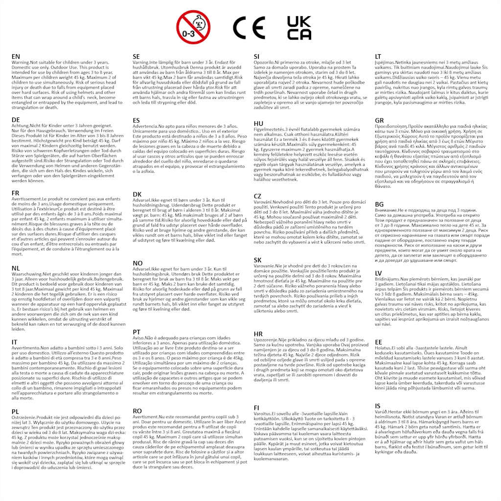 Opozorilo. Ni primerno za otroke mlajše od 3 let. Samo za domačo uporabo.