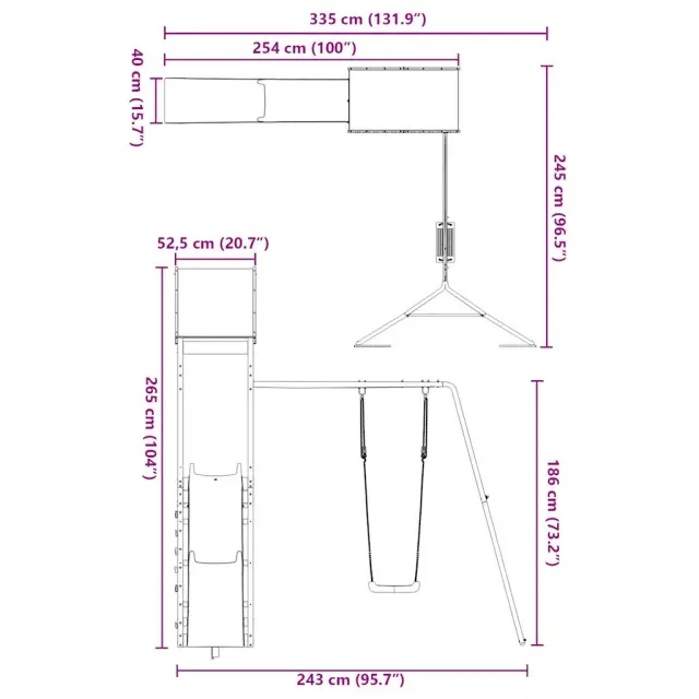 • Celotne dimenzije: 245 x 335 x 265 cm (D x Š x V)