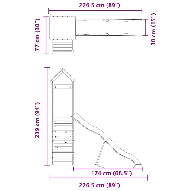 vidaXL Zunanje igralo trdna borovina