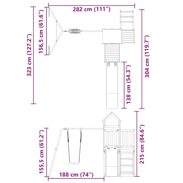 vidaXL Zunanje igralo trdna borovina