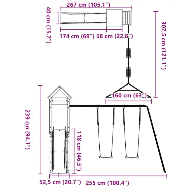 vidaXL Zunanje igralo trdna borovina