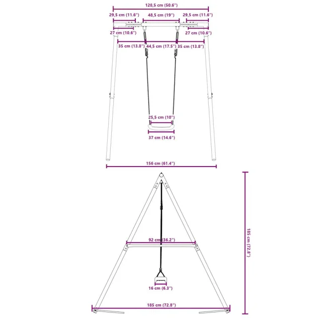 • Kovinski okvir za velike obremenitve: Ta okvir za gugalnico je izdelan iz barvanih jeklenih cevi, ki so odporne proti rjavenju, izjemno trdne in odporne na deformacije, kar zagotavlja odlično stabilnost in vzdržljivost. Struktura v obliki črke A zagotavlja močno oporo brez nihanja.