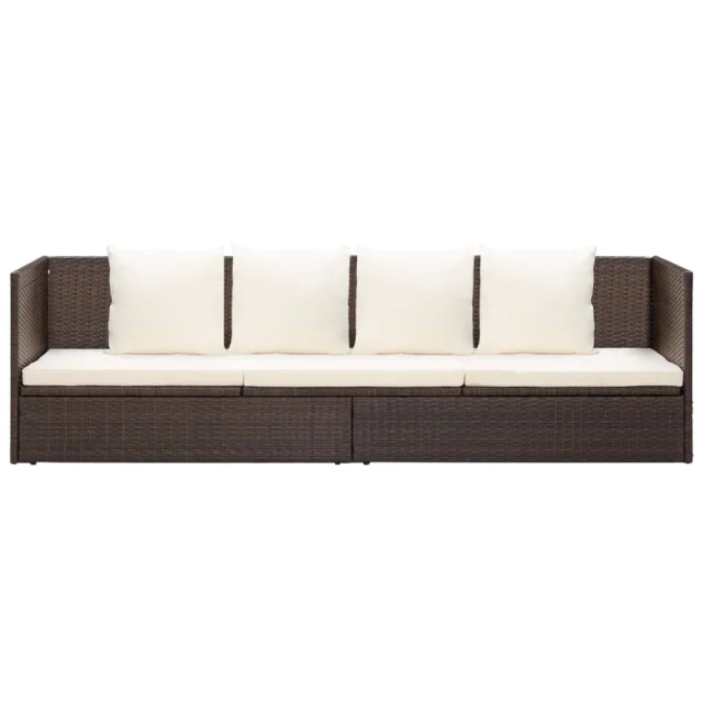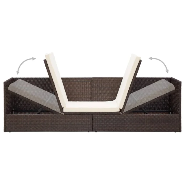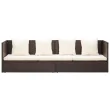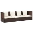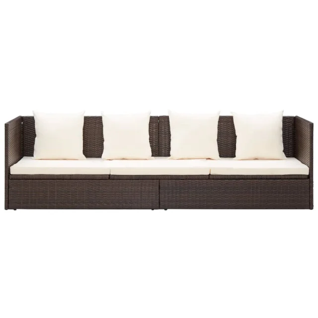 vidaXL Zunanji ležalnik z blazino in vzglavniki poli ratan rjav