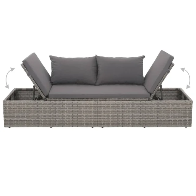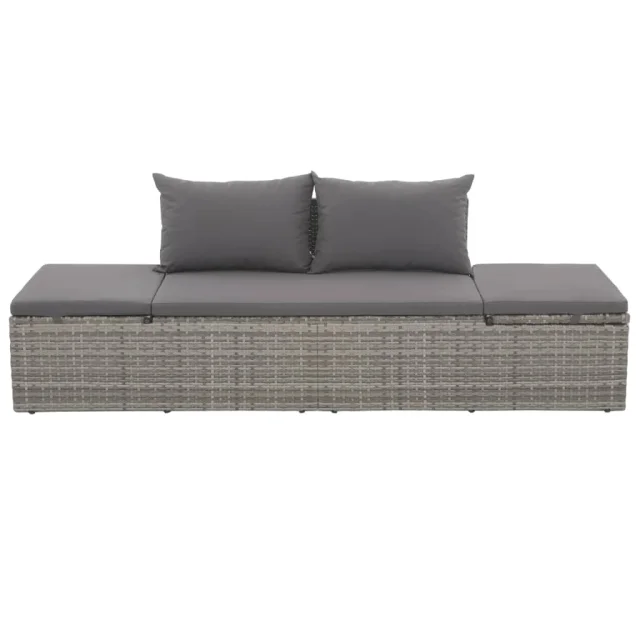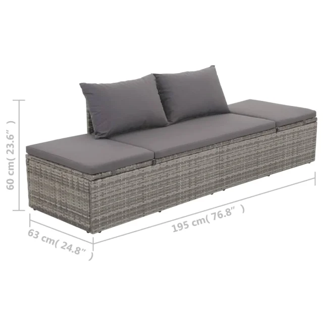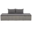 vidaXL Zunanji ležalnik z blazino in vzglavniki poli ratan siv