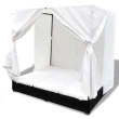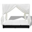 vidaXL Zunanji ležalnik z zavesami poli ratan črn
