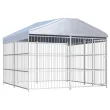 Ta pasji boks zagotavlja dovolj prostora za razgibavanje, jeklene rešetke pa preprečujejo neubogljivost in nesreče ter zagotavljajo dobro prezračevanje. Zahvaljujoč čvrsti in robustni jekleni konstrukciji je ta kakovosten pasji boks izjemno vzdržljiv in izdelan za dolgoletno uporabo. Priložena streha iz 100 % polietilena je odporna na vremenske vplive ter bo nudila dobro zaščito pred soncem in dežjem. Poleg tega se vrata s tečaji ponašajo s sistemom zapiranja z zapahom za dodatno varnost vaših psov.