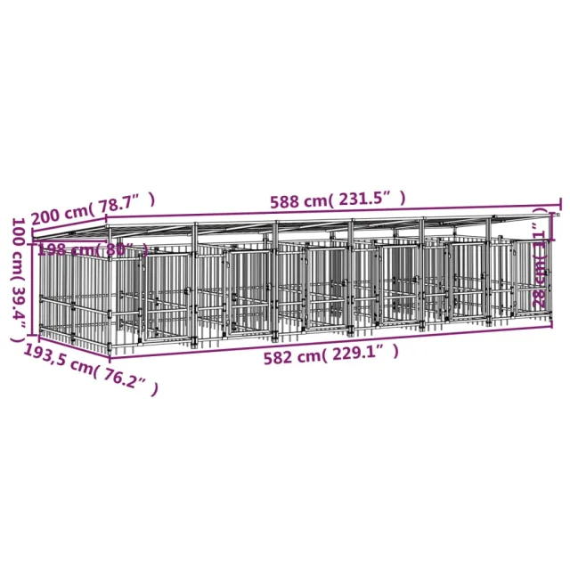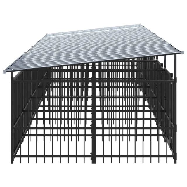 vidaXL Zunanji pasji boks s streho jeklen 11,26 m²