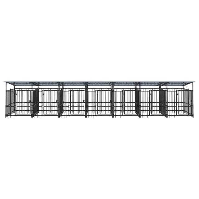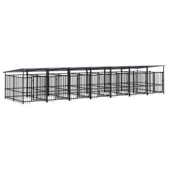 vidaXL Zunanji pasji boks s streho jeklen 13,14 m²