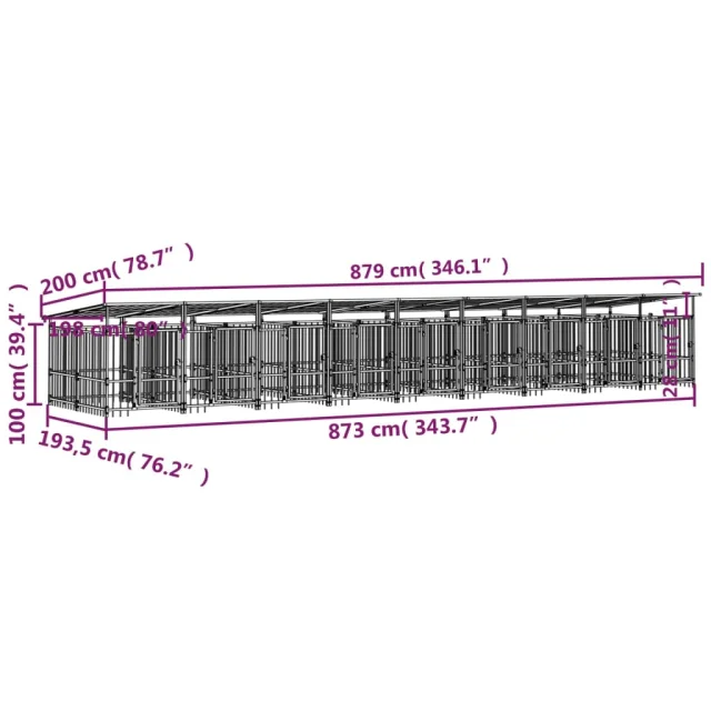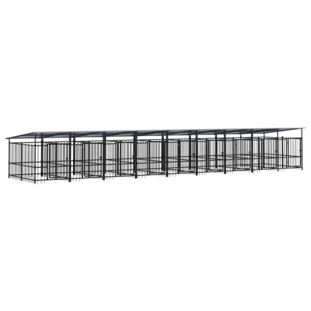 vidaXL Zunanji pasji boks s streho jeklen 16,89 m²