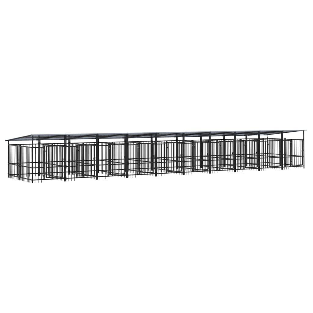 vidaXL Zunanji pasji boks s streho jeklen 18,77 m²