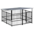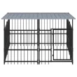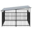 vidaXL Zunanji pasji boks s streho jeklen 3,75 m²