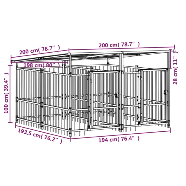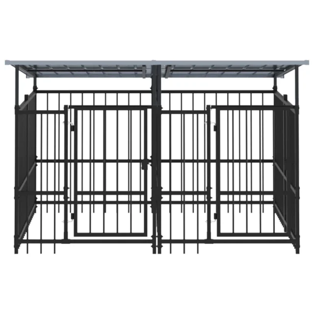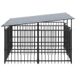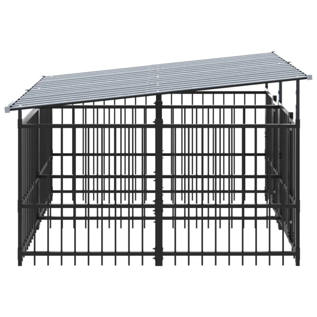 vidaXL Zunanji pasji boks s streho jeklen 3,75 m²
