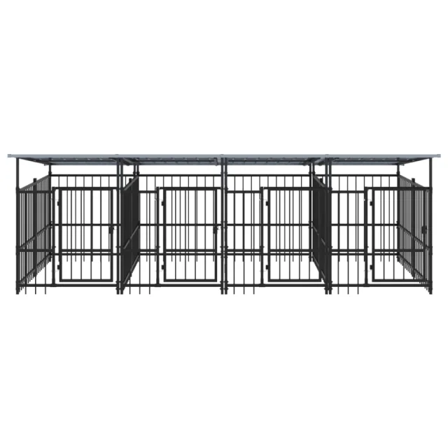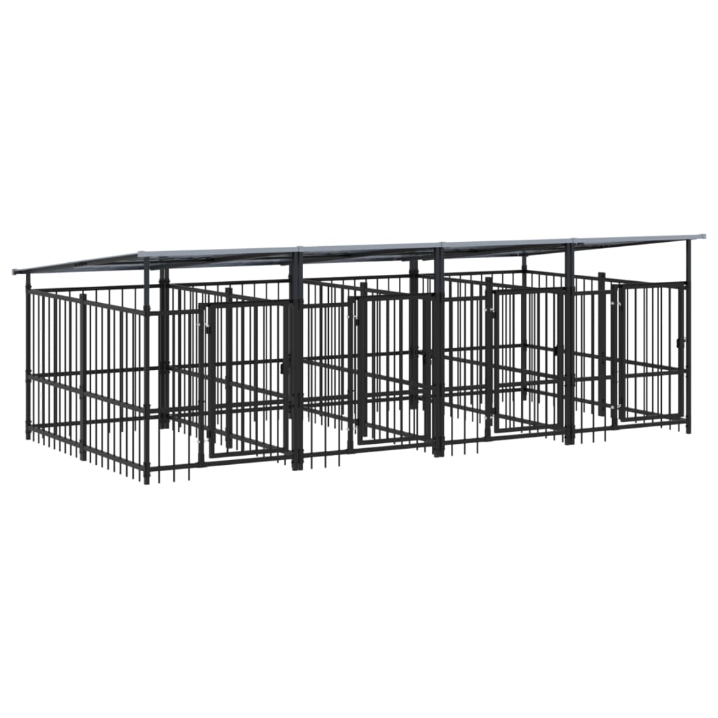 vidaXL Zunanji pasji boks s streho jeklen 7,51 m²