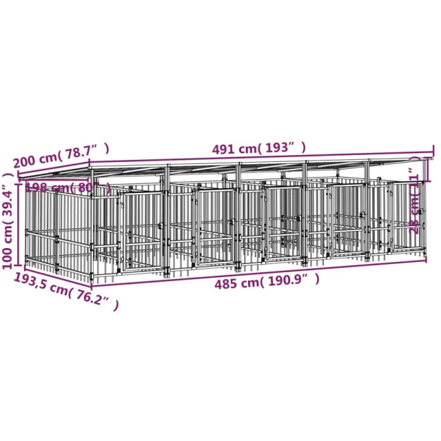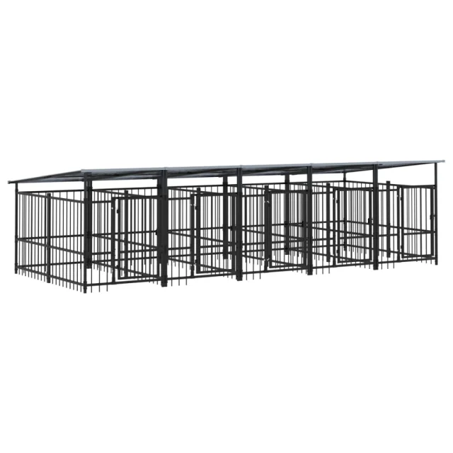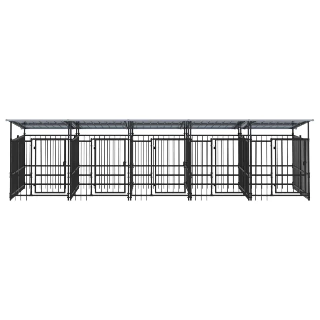 vidaXL Zunanji pasji boks s streho jeklen 9,38 m²