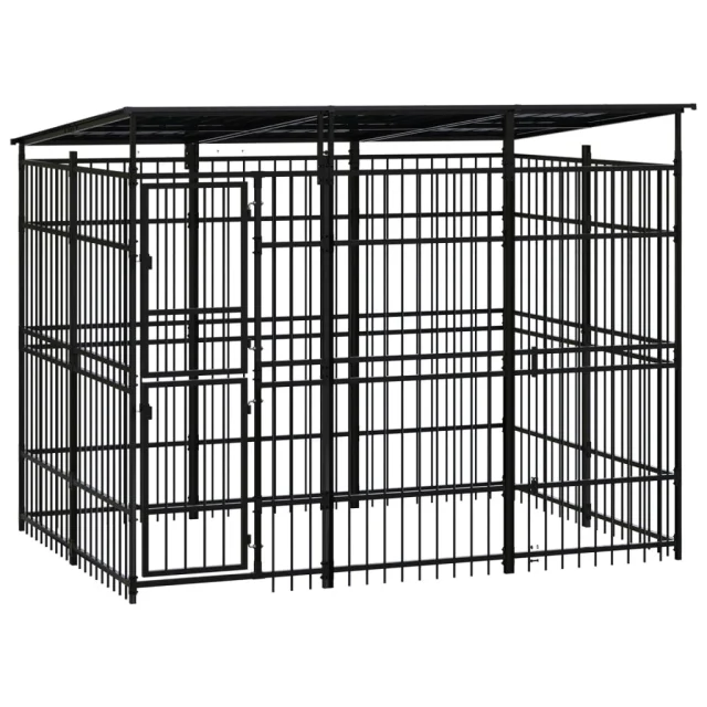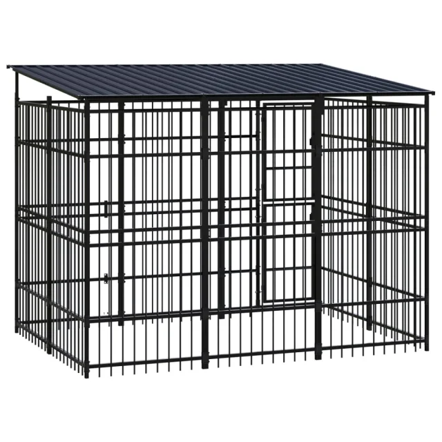 vidaXL Zunanji pasji boks s streho jeklo 5,53 m²