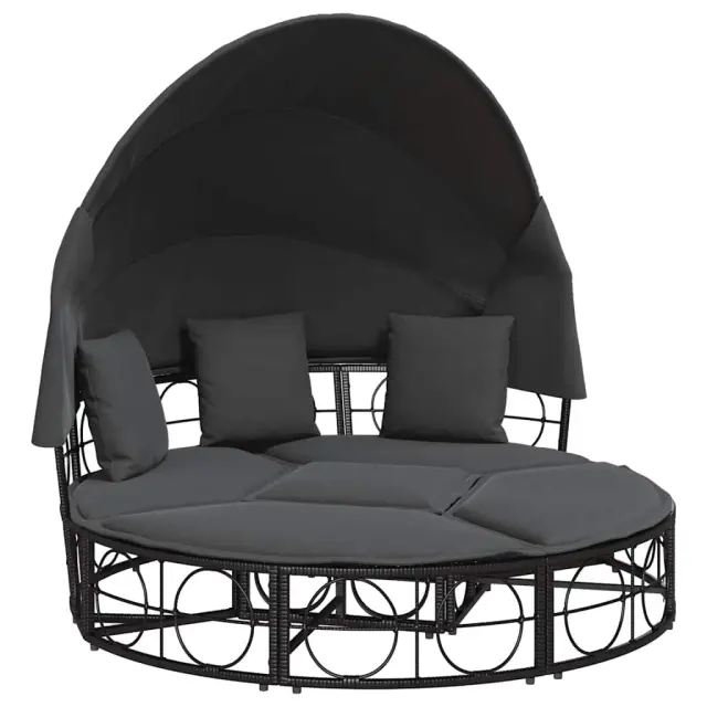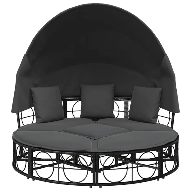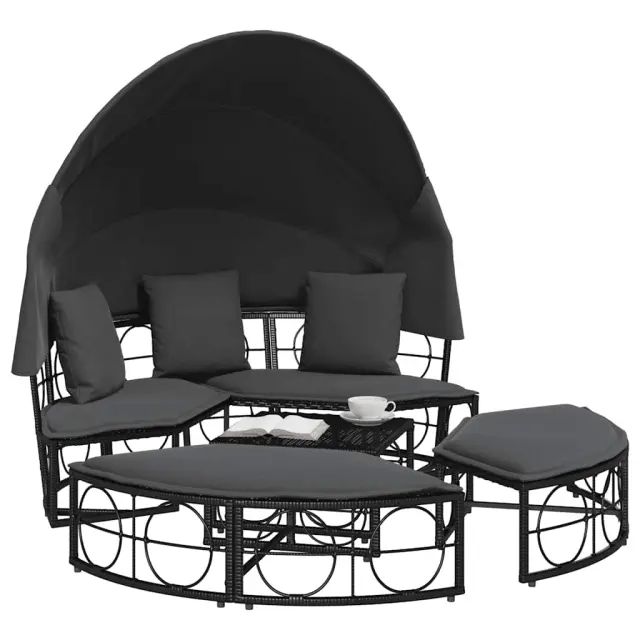 Ta udoben zunanji počivalnik z nadstreškom in blazinami iz poli ratana predstavlja popolno kombinacijo stila in funkcionalnosti.