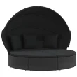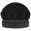 Ta udoben zunanji počivalnik z nadstreškom in blazinami iz poli ratana predstavlja popolno kombinacijo stila in funkcionalnosti.