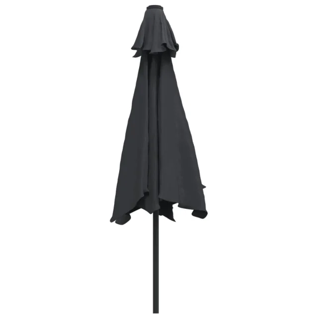 Senčnik je izdelan iz UV odpornega in barvno obstojnega poliestra, zato vam zagotavlja odlično zaščito pred soncem, poleg tega pa je preprost za čiščenje. Premer cevi meri 38 mm, namestite pa ga lahko na že obstoječ podstavek ali na mize, ki imajo na sredini luknjo za senčnik. Ekskluziven dizajn vam omogoča, da senčnik nagnete tako, da preprečuje sončne žarke, ki padajo naravnost na tla. Močan kovinski drog skupaj z 8 vzdržljivimi palicami daje senčniku stabilnost in vzdržljivost. Naš vrtni senčnik je preprost za odpiranje in zapiranje, zahvaljujoč mehanizmu za odpiranje s pomočjo ročice. Izdelek je preprost za montažo.