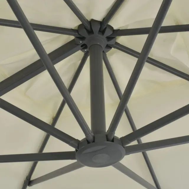 Ta senčnik se ponaša s trdim aluminijastim okvirjem, veliko streho, ki je odporna na UV ter z dodatnim prenosnim podstavkom. Senčnik je zato popoln za zaščito pred sončno svetlobo. Naš vrtni senčnik se preprosto odpira in zapira z obračanjem ročaja na drogu. Aluminijasti drog z 8 močnimi aluminijastimi palicami zagotavlja, da je zunanji senčnik zelo vzdržljiv. Ekskluziven dizajn senčnika omogoča nagibanje in vrtenje za 360 stopinj za blokiranje sonca. Velika, odstranljiva jeklena kiržna osnova pripomore k stabilnosti, pri tem pa ne zavzame veliko prostora. Dodatni podstavek za senčnik je sestavljen iz štirih ločenih delov, ki jih lahko napolnite s 60 litri vode ali 80 kg peska. Idealen je za stabilizacijo senčnikov s križno osnovo. Ko boste podstavek izpraznili, bo ta postal lahek, zato ga boste brez težav prenašali.Senčnik:Barva: PeščenaDimenzije: 3 x 3 x 2,58 m (D x Š x V)Material okvirja: Aluminij + jekloVsebuje ročicoZ jekleno, križno osnovoDodaten podstavek za senčnik:Barva: ČrnaMaterial: PlastikaVelikost posameznega dela: 50 x 50 x 7,5 cm (D x Š x V)Lahko se napolni z vodo ali peskomProstornina vsakega dela: 15 LVsebuje štiri delePrimerno za vse vrste križne osnove 276343
