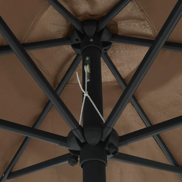 Senčnik iz UV odpornega in nebledljivega poliestra zagotavlja optimalno zaščito pred soncem ter je preprost za čiščenje. Močan aluminijast drog s 6 močnimi jeklenimi rebrami zagotavlja, da je senčnik zelo stabilen in trpežen. Vrtni senčnik se lahko zlahka odpre in zapre zahvaljujoč mehanizmu z ročico. Izdelek je preprost za sestavo.