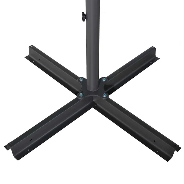 Senčnik je izdelan iz UV-odpornega in barvno obstojnega poliestra, zato vam zagotavlja odlično zaščito pred soncem, poleg tega pa je preprost za čiščenje. Priložen je trpežen križni podstavek, ki zagotavlja stabilnost. Močan aluminijast drog skupaj z 8 vzdržljivimi palicami daje senčniku stabilnost in vzdržljivost. Naš vrtni senčnik je preprost za odpiranje in zapiranje, zahvaljujoč mehanizmu za odpiranje s pomočjo ročice. Izdelek je preprost za montažo.
