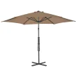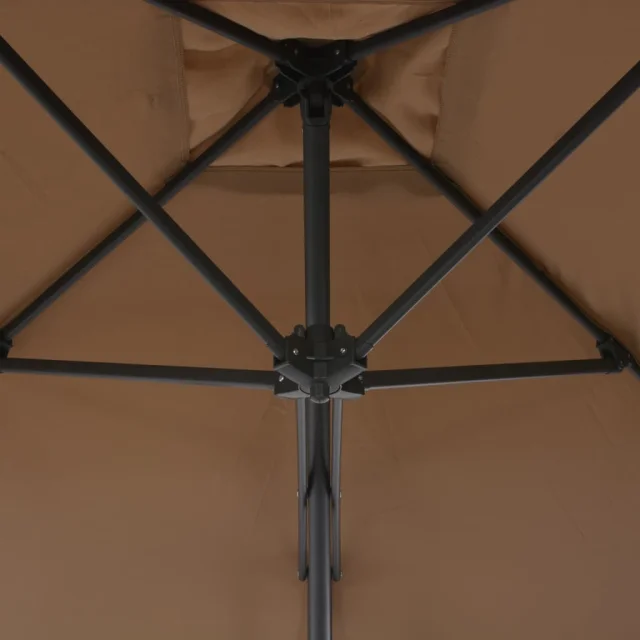 Senčnik je izdelan iz UV-odpornega in barvno obstojnega poliestra, zato zagotavlja optimalno zaščito pred soncem in preprosto čiščenje. Ima močno jekleno križno osnovo za dodatno stabilnost. Močan jeklen drog skupaj s 6 trpežnimi palicami zagotavlja, da je senčnik zelo stabilen in trpežen. Ta edinstven senčnik se lahko obrača za 360 stopinj, kar pomeni, da boste brez težav nastavili naklon senčnika in sledili premikanju sonca. Izdelek je preprost za sestavo.