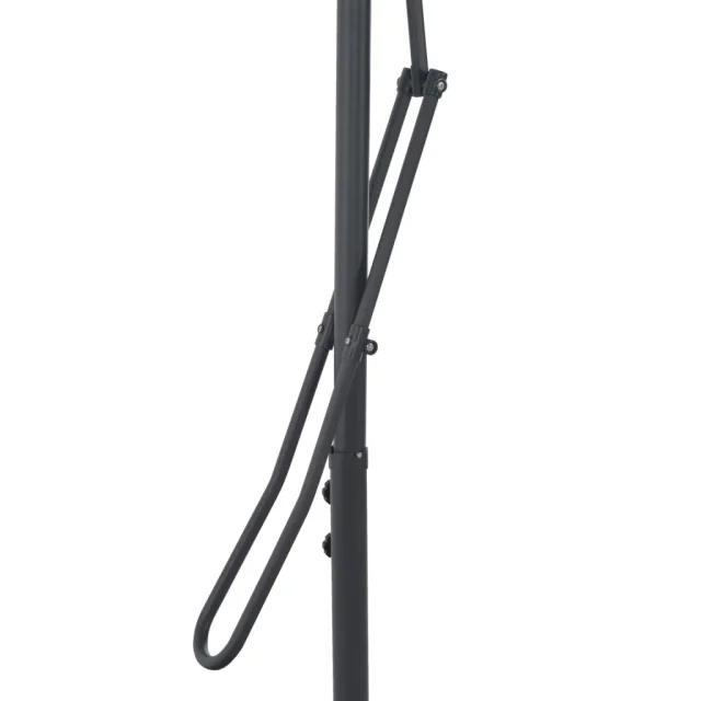 Senčnik je izdelan iz UV-odpornega in barvno obstojnega poliestra, zato zagotavlja optimalno zaščito pred soncem in preprosto čiščenje. Ima močno jekleno križno osnovo za dodatno stabilnost. Močan jeklen drog s 6 trpežnimi palicami zagotavlja stabilnost in trpežnost senčnika. Ta edinstven senčnik se vrti za 360 stopinj, kar pomeni, da boste brez težav nastavili naklon senčnika glede na premikanje sonca.
