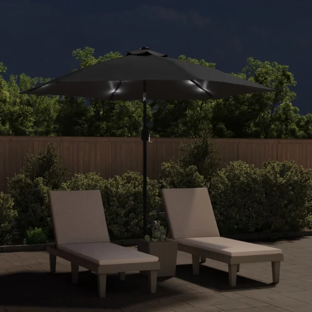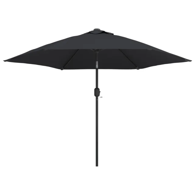 vidaXL Zunanji senčnik z LED lučkami in jeklenim drogom 300 cm črn