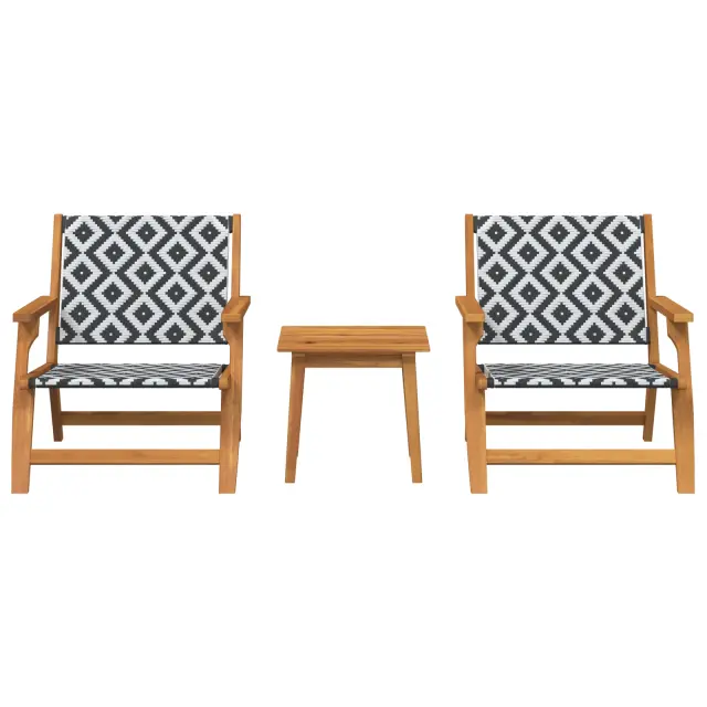 vidaXL Zunanji stoli s tabelo 3 kosi Črna in Bela Trdna akacijeva les
