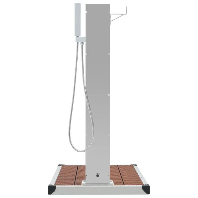 Naša vrtna tuš pipa se ponaša s stilsko obliko. Skupaj z elegantnim podstavkom za tuš bo odličen dodatek za vaš bazen ali drug zunanji prostor. Vrtni tuš s pipo je izdelan iz vzdržljivega nerjavečega jekla z brušenim finišem, ki zagotavlja odpornost na vremenske vplive. Ima pipo in ročni tuš, ki bo v pomoč pri delu na vrtu, zalivanju in hitremu tuširanju. Opremljena je tudi z nosilcem za enostavno obešanje cevi za vodo. Naš podstavek za tuš zagotavlja odlično higieno ter se ponaša z vzdržljivostjo in odpornostjo na rjavenje. Podstavek za vrtni tuš je preprost za čiščenje z vlažno krpo. Luknje za namestitev so že izvrtane za preprosto montažo. Tuš pipa in podstavek sta enostavna za sestavo. Priloženi so tudi pripomočki za montažo.Pipa:Barva: SrebrnaMaterial: 201 nerjaveče jeklo z brušenim finišemMaterial pipe: 304 nerjaveče jekloCelotna višina: 110 cmVelikost stolpa: 15 x 7 cm (D x Š)Dimenzije podstavka: 20 x 12 cm (D x Š)Velikost ročnega tuša: 2,8 x 2,8 x 21 cm (Š x G x V)Dolžina cevi: 150 cmStandardni 1/2" vodovodni priključekZ nosilcem za obešanje vodne ceviPodstavek za tuš:Barva: Rjava, srebrnaMaterial: WPC, brušeno nerjaveče jekloCelotne dimenzije: 80 x 62 x 5 cm (Š x G x D)Z dizajnom iz letvicZa 1 oseboIzvrtane luknje za pritrditevPaket vsebuje:1 x Tuš pipa (1 ročni tuš)1 x Podstavek za tušDodatki za montažo 3051291