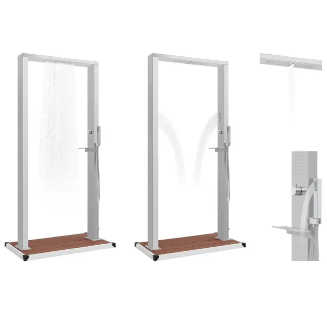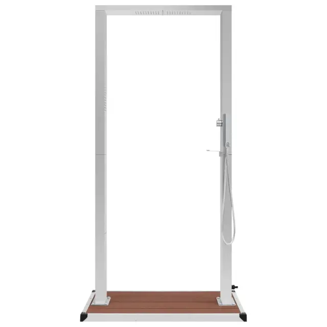 Naš večfunkcijski tuš panel se ponaša s stilsko obliko. Skupaj z elegantnim podstavkom za tuš bo odličen dodatek za vaš bazen ali drug zunanji prostor. Ta zunanji tuš izstopa s prostornim dizajnom, zato ga lahko hkrati uporabljata 2 osebi. Tuš stolp je izdelan iz nerjavečega brušenega jekla s čudovitim, ukrivljenim dizajnom. Ima 2 veliki glavi za tuš, slap, 2 masažni šobi in ročni tuš, med katerimi lahko izbirate s pritiskom na gumb. Privoščite si resnično sproščujoče tuširanje in uživajte s tem čudovito zasnovanim in moderno oblikovanim tuš panelom! Naš podstavek za tuš zagotavlja odlično higieno ter se ponaša z vzdržljivostjo in odpornostjo na rjavenje. Podstavek za vrtni tuš je preprost za čiščenje z vlažno krpo. Luknje za namestitev so že izvrtane za preprosto montažo. Tuš panel je enostaven za sestavo. Priloženi so tudi pripomočki za montažo.Tuš panel:Barva: SrebrnaMaterial panela: 201 nerjaveče jeklo z brušenim finišemCelotna višina: 210 cmVelikost stolpa: 15 x 6,5 cm (D x Š)Dimenzije podstavka: 20 x 12 cm (D x Š)Velikost velike tuš glave: 16,5 x 7,5 cm (D x Š)Širina slapu: 12,5 cmVelikost masažnih šob: 16,5 x 7,5 cm (D x Š)Velikost ročnega tuša: 2,8 x 2,8 x 21 cm (Š x G x V)Dolžina cevi iz nerjavečega jekla: 150 cmFunkcije: Tuširanje, vodni slap, masaža telesa in ročni tuš200 silikonskih šob (2 x 50 šob na veliki glavi za prho in 2 x 50 curkov na masažnih šobah)Silikonske šobe so odporne proti nabiranju vodnega kamnaPaket vsebuje pripomočke za namestitevStandardni 1/2" vodovodni priključekPodstavek za tuš:Barva: Rjava, srebrnaMaterial: WPC, 201 brušeno nerjaveče jekloCelotne dimenzije: 110 x 62 x 5 cm (Š x G x D)Z dizajnom iz letvicZa 2 osebiIzvrtane luknje za pritrditevPotrebno sestavljanje: DaPaket vsebuje:1 x Tuš panel (2 slapova, 2 masažni šobi, 1 slap in 1 ročni tuš)1 x Podstavek za tušDodatki za montažo 3051293