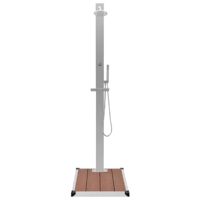 Naš večfunkcijski tuš panel se ponaša s stilsko obliko. Skupaj z elegantnim podstavkom za tuš bo odličen dodatek za vaš bazen ali drug zunanji prostor. Tuš stolp je izdelan iz nerjavečega brušenega jekla in ima čudovit ukrivljen dizajn. Ima veliko glavo za tuš in ročni tuš, med katerima lahko izbirate s pritiskom na gumb. Privoščite si resnično sproščujoče tuširanje in uživajte s tem moderno oblikovanim in čudovito zasnovanim tuš panelom! Naš podstavek za tuš zagotavlja odlično higieno ter se ponaša z vzdržljivostjo in odpornostjo na rjavenje. Podstavek za vrtni tuš je preprost za čiščenje z vlažno krpo. Luknje za namestitev so že izvrtane za preprosto montažo. Tuš panel je enostaven za sestavo. Priloženi so tudi pripomočki za montažo.Tuš:Barva: SrebrnaMaterial panela: 201 nerjaveče jeklo z brušenim finišemCelotne dimenzije: 10 x 6,5 x 210 cm (Š x G x V)Velikost stolpa: 10 x 6,5 cm (D x Š)Dimenzije podstavka: 20 x 12 cm (D x Š)Premer velike tuš glave: 15 cmVelikost ročnega tuša: 2,8 x 2,8 x 21 cm (Š x G x V)Dolžina cevi iz nerjavečega jekla: 150 cmFunkcije: Velika tuš glava, točni tušSilikonske šobe so odporne proti nabiranju vodnega kamnaPaket vsebuje pripomočke za namestitevStandardni 1/2" vodovodni priključekPodstavek za tuš:Barva: Rjava, srebrnaMaterial: WPC, brušeno nerjaveče jekloCelotne dimenzije: 80 x 62 x 5 cm (Š x G x D)Z dizajnom iz letvicZa 1 oseboIzvrtane luknje za pritrditevPotrebno sestavljanje: DaPaket vsebuje:1 x Tuš panel (1 tuš glava in 1 ročni tuš)1 x Podstavek za tušDodatki za montažo 3051285