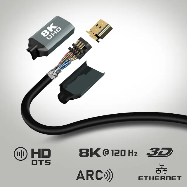 Kabel HDMI 2.1 model HD-8K15 podjetja LinQ za uživanje v vaši vsebini na zaslonu UHD. Še bolj napreden video kabel HDMI, ki zagotavlja kakovosten prenos videa in zvoka 8K/120Hz. 1,5 m dolg kabel HDMI, ki podpira Ethernet.