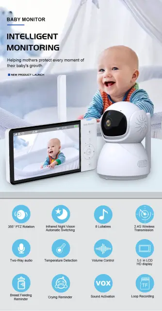 8 pomirjujočih uspavank: Varuška lahko predvaja 8 uspavank, da otroka hitro pomiri. Poleg tega ima otroška kamera številne druge praktične funkcije, kot so opomniki in glasovna aktivacija, ki zagotavljajo večjo varnost.
