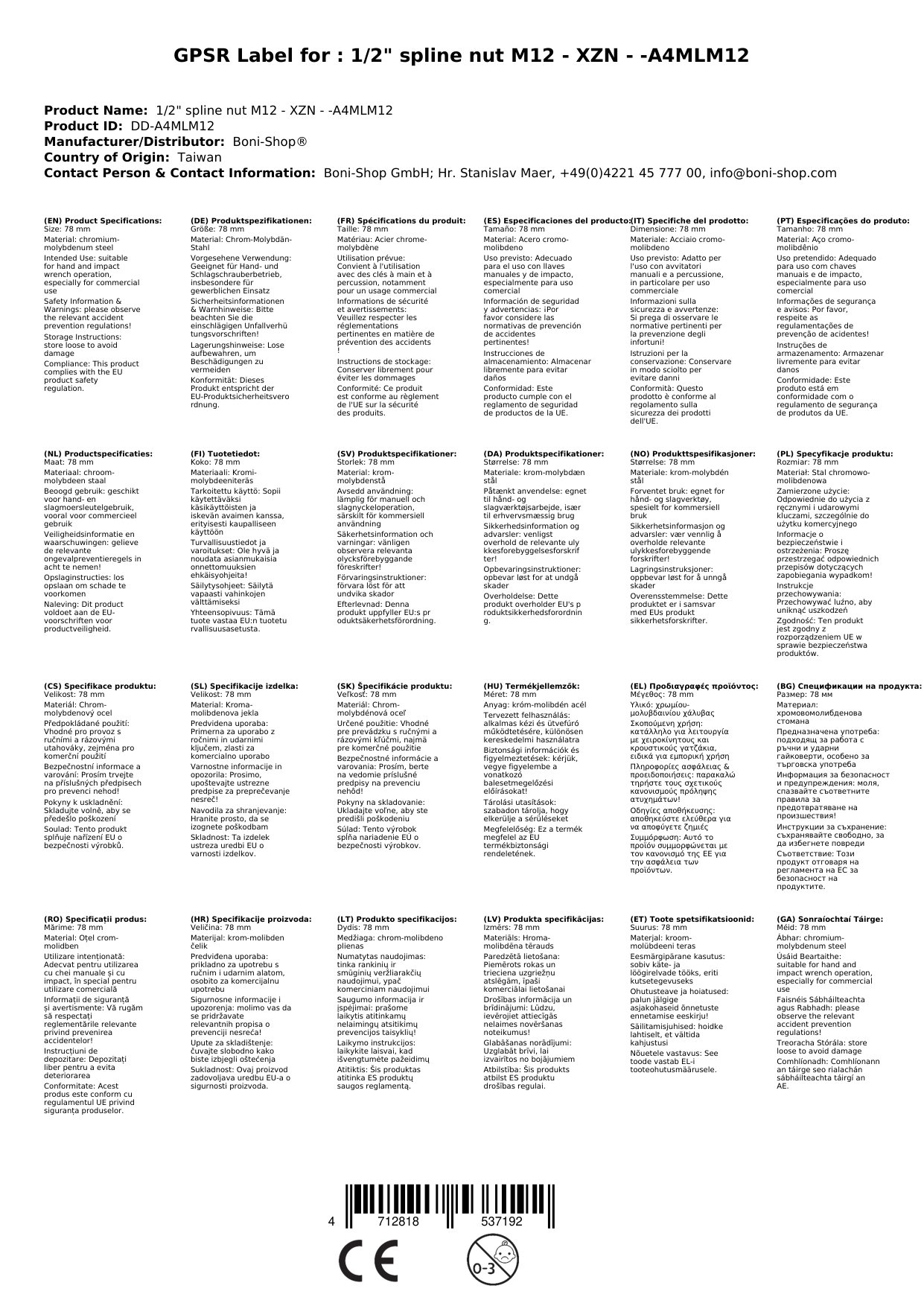 Vielzobi M12 nastavek za udarni vijačnik je zasnovan z mislijo na profesionalce in zahtevne uporabnike, ki cenijo robustnost in natančnost. Izdelan iz visokokakovostnega krom-molibden jekla, ta nastavek ponuja izjemno vzdržljivost in dolgo življenjsko dobo, kar je ključnega pomena pri intenzivni uporabi. Njegov inovativni XZN (Spline) priklop omogoča optimalen prenos moči, kar preprečuje zdrs in obrabo vijakov ter s tem ščiti vaše orodje.