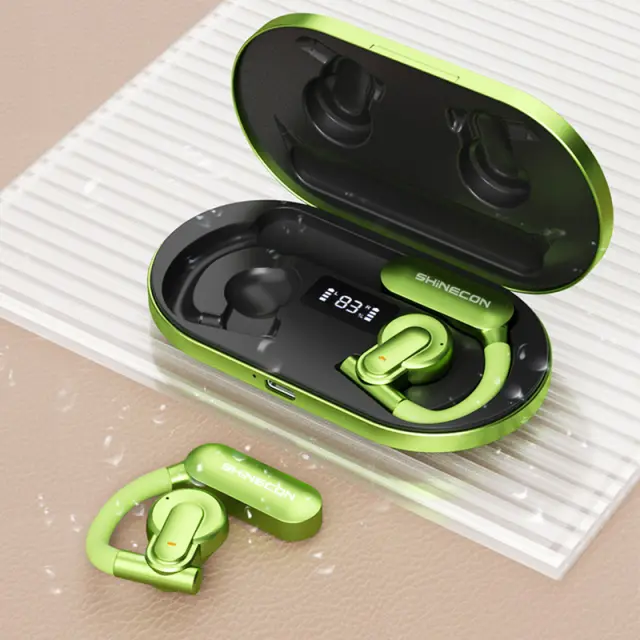 Udobno prileganje: Zasnova ušesnega kavlja zagotavlja varno in udobno prileganje, tudi med napornimi aktivnostmi. Izdelane iz PC in ABS materialov, so te slušalke lahke in zasnovane za dolgotrajno nošenje. Ergonomska oblika zmanjšuje pritisk na ušesa in zagotavlja prijetno izkušnjo poslušanja ure in ure. Vijolična barva doda pridih sloga vašemu vsakdanjemu videzu.
