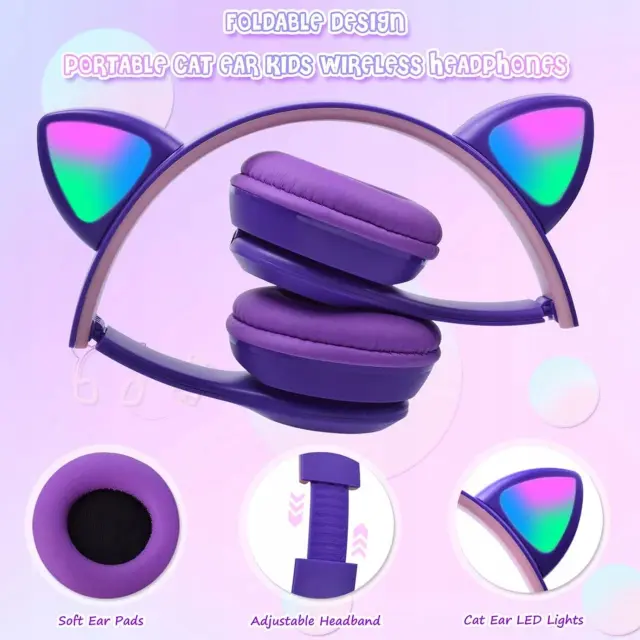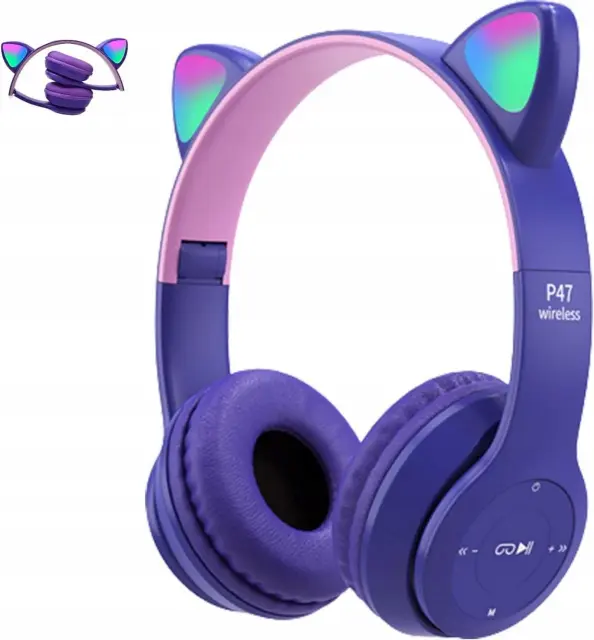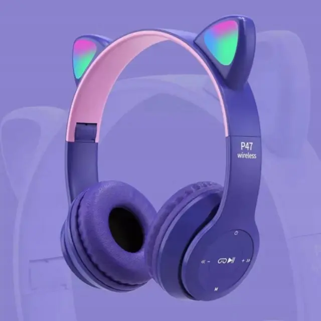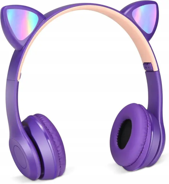 Odkrijte čarobnost glasbe z našimi slušalkami Bluetooth RGB z mačjimi ušesi v vijolični barvi!