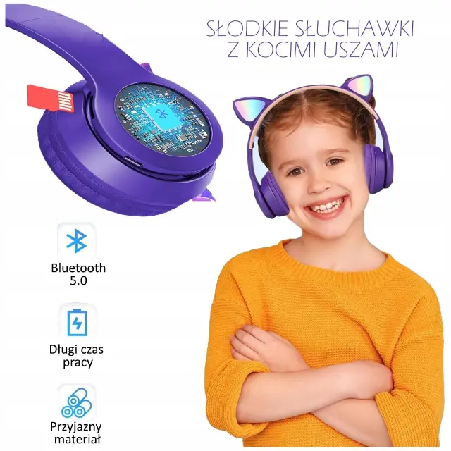 V kombinaciji z mačjimi ušesi v slastni vijoličasti barvi te slušalke niso le vir odličnega zvoka, ampak tudi eleganten dodatek, ki ga otroci radi nosijo.