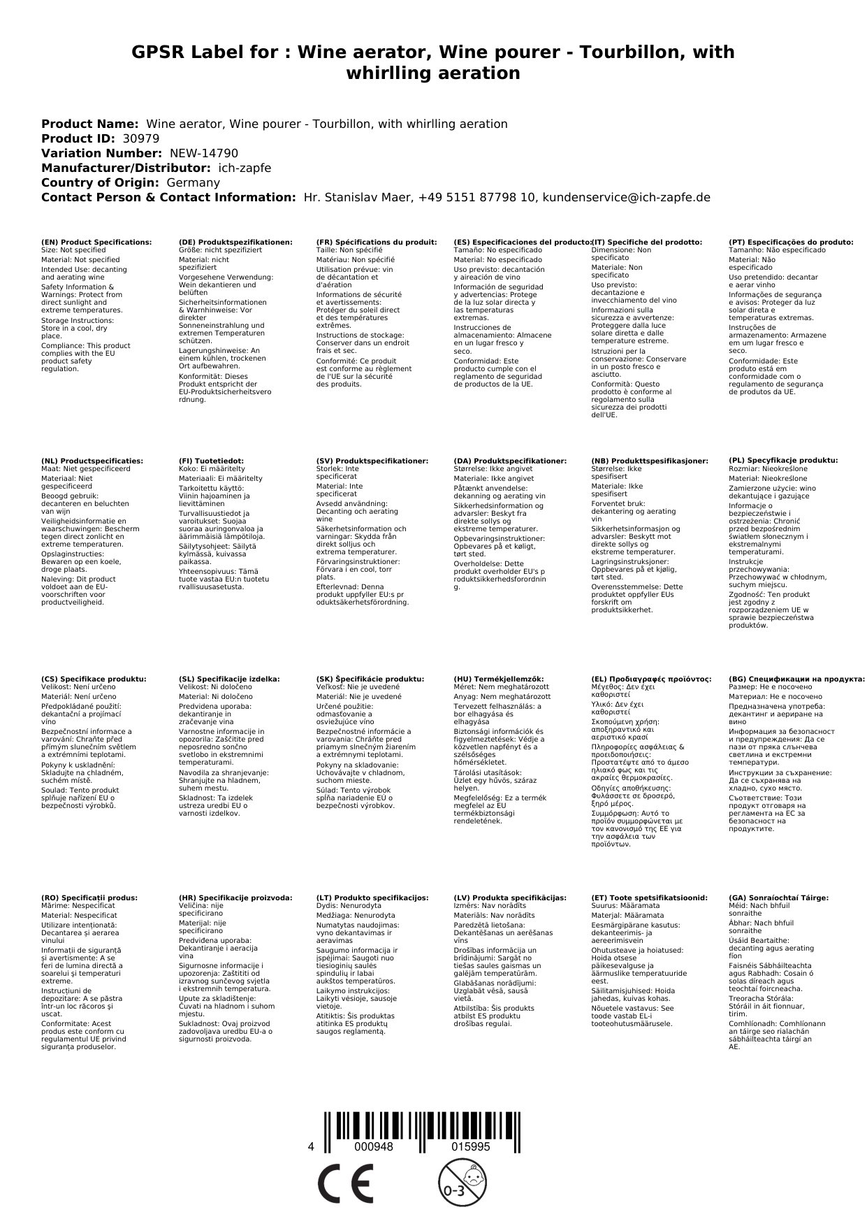 Ta inovativna naprava združuje funkcijo izlivalke in zračenja, kar omogoča, da uživate v vinu v najboljši obliki takoj po odprtju steklenice. Vsak naliv postane užitek, saj vrtinčasti tok zraka enakomerno vnaša kisik v vino, kar izboljša njegov okus in vonj.