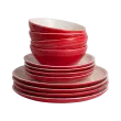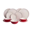 Ročno izdelana in okrašena namizna posoda, ki je nastavljena iz Portugalske za 4 osebe. Posode s kamnom lahko uporabljate v mikrovalovni pečici in jih lahko operete v pomivalnem stroju. V kompletu 3 velikosti: majhne krožnike za zajtrk s premerom 20,5 cm, velike večerje s premerom 27 cm in sklede za juhe in sadje s premerom 16,5 cm. Jedi so skrbno okrašene, delovale bodo tako za nedeljsko kosilo kot za izvrstno večerjo.